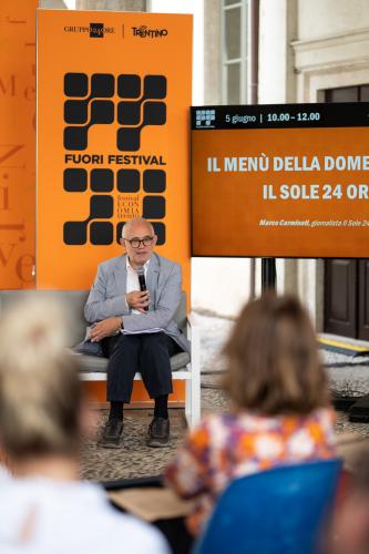 La Domenica, l’inserto culturale del Sole 24 Ore - dal 1983 un unicum nel panorama italiano con il suo sguardo a cavallo tra il classico e il contemporaneo - sarà presente al Fuori Festival con il format “Il Menù della Domenica”. Marco Carminati, caporedattore dell’inserto, racconterà come nasce un numero della Domenica e commenterà con i partecipanti alcuni pezzi tratti dall’ultimo numero in edicola rivolto al futuro e ai giovani. L’appuntamento sarà preceduto da un concerto a cura del Conservatorio di Trento e a seguire alcune novità a tema letterario.