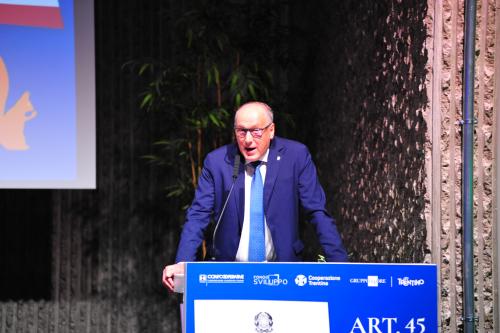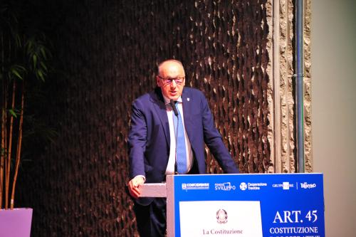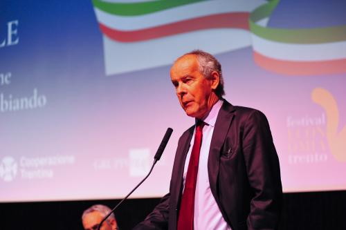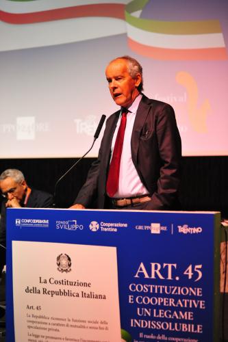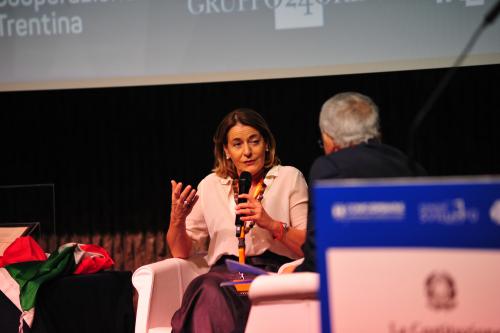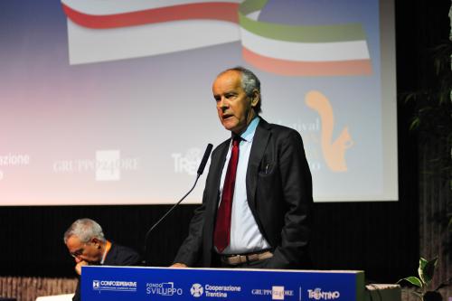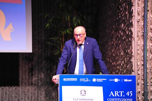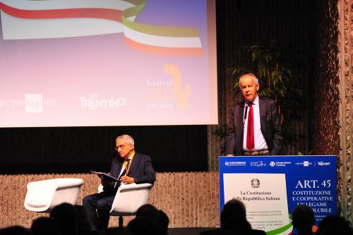 con Daria de Pretis, vicepresidente della Corte Costituzionale, Maurizio Gardini, presidente Confcooperative, Franco Ianeselli, sindaco di Trento e Dario Di Vico, giornalista Corriere della Sera