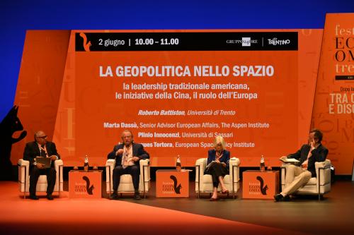 con Roberto Battiston, Università di Trento, Marta Dassù, The Aspen Institute, Plinio Innocenzi, Università di Sassari e Jean-Jaques Tortora, European Space Policy Institute