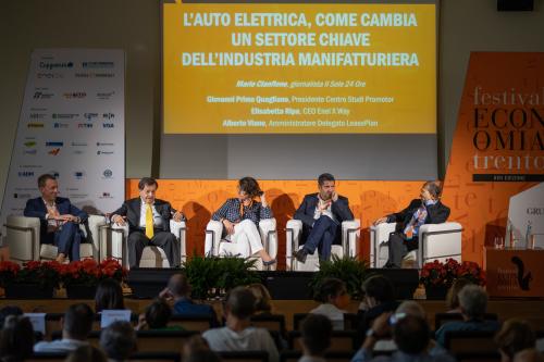 Giovanni Primo Quagliano, Presidente Centro Studi Promotor; Elisabetta Ripa, Global e-mobility Enel; Alberto Viano, Amministratore Delegato LeasePlan; Mario Cianflone, giornalista Il Sole 24 Ore